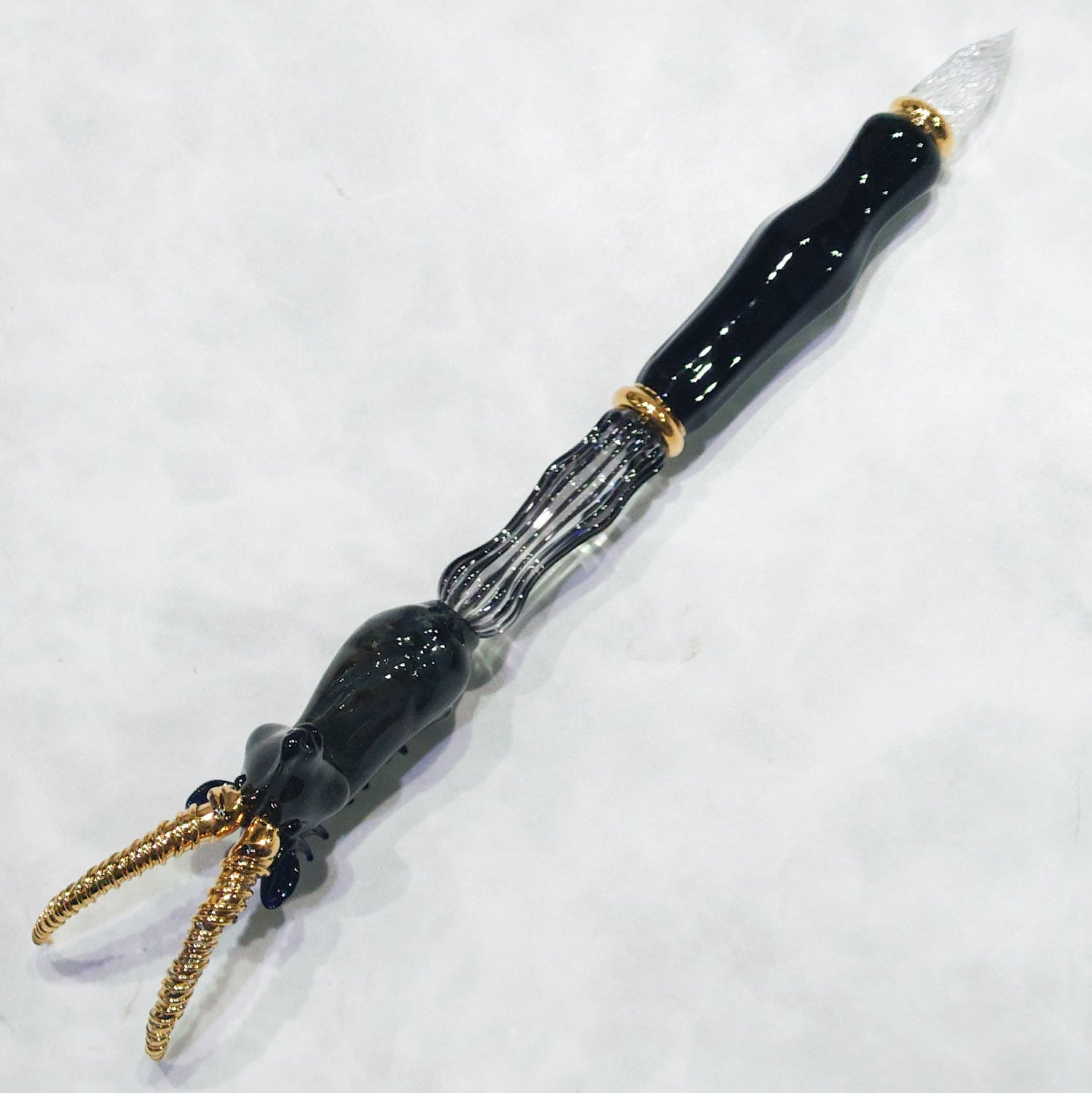 ユニコーンと並ぶ神話の生物バイコーンの頭を飾りに付けた造形ガラスペンです。