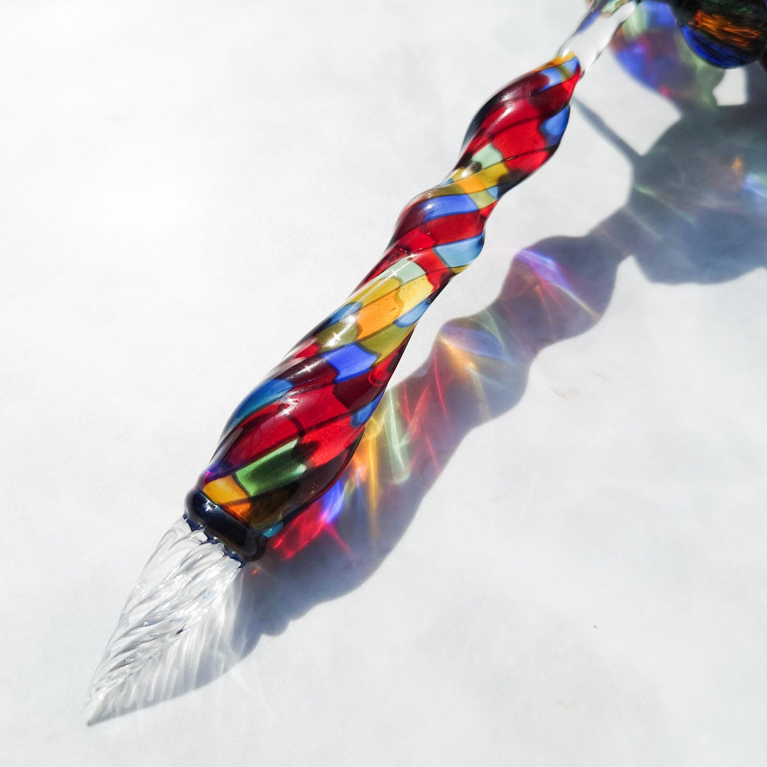 The beautiful stained glass style glass pen "Goldfish with Decoration" is meticulously designed down to the last detail. It is decorated with large and gorgeous goldfish, and the colorful combination of red, blue, yellow and green is eye-catching. This luxurious artwork will not only make you enjoy writing, but also heal your heart every time you see it.