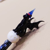 The new "Halloween cat glass pen" is now available! It is characterized by the design of a Kuroneko wearing a magic cap and having bat wings sitting on the moon. The pen shaft is black, which reminds you of the midnight, and white lines and dots are fantastically designed. Just by looking at it, you can enjoy the fun atmosphere of Halloween.