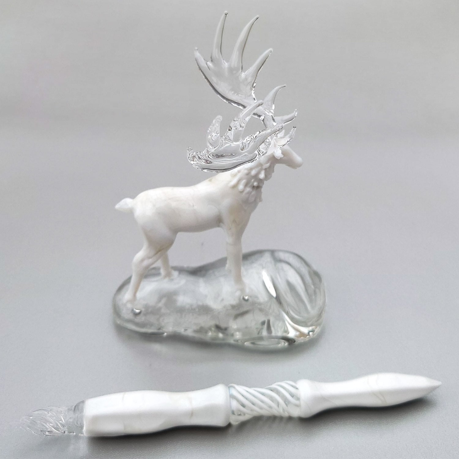 ■ オオツノジカのペンレスト兼ペーパーウェイトと専用ガラスペンセット