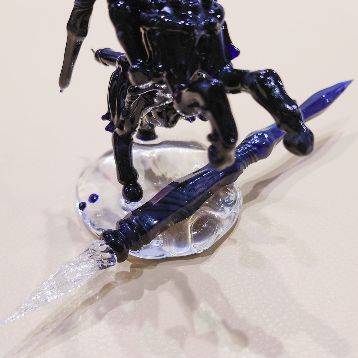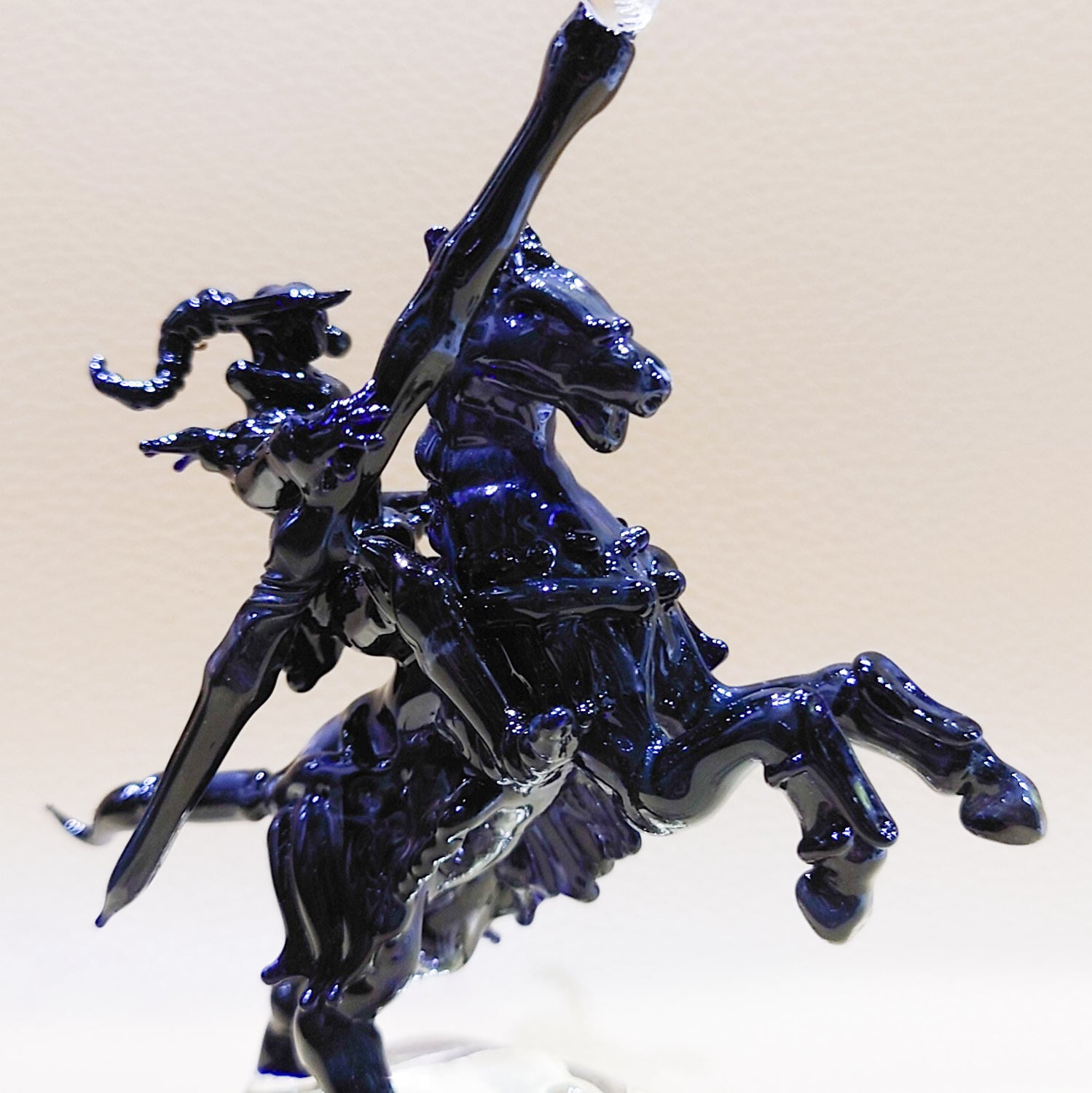 「Black knight pen rest combined with a paperweight and dedicated glass pen」は、バーナーワークの高い技術によって作成された黒騎士の美術品です!このペーパーウェイト兼ペンレストは、アート性と実用性を見事に融合させ、デスクや書斎の美しさを格上げします。優雅なデザインが空間に個性的なアクセントを加えます。