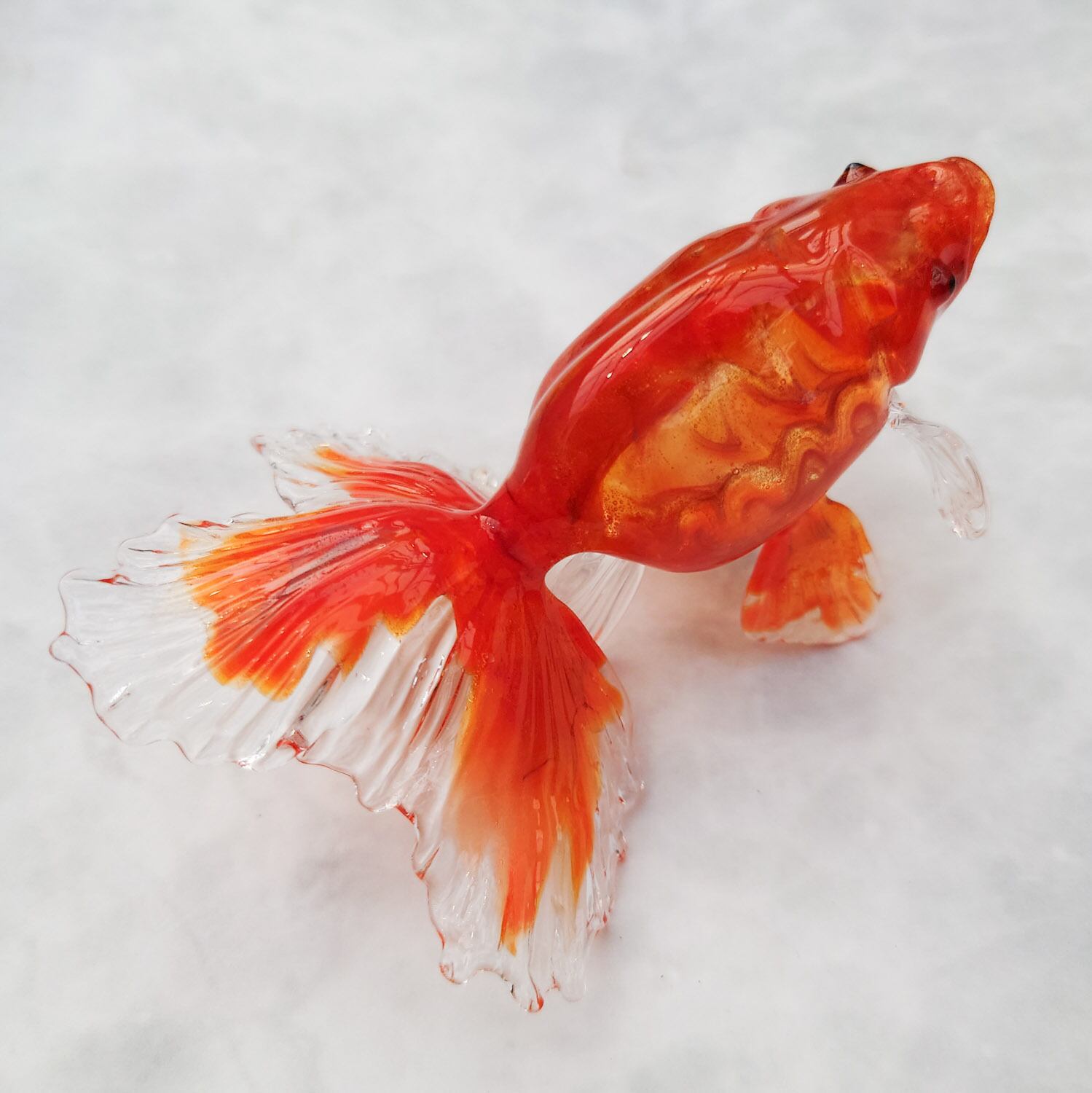 アクセサリー用の金魚より大きく、最近のどんどん大きくなっていった置物金魚から元の大きさに近くなったサイズです。完成度は年々高くなっていますので毎年が買い時です。